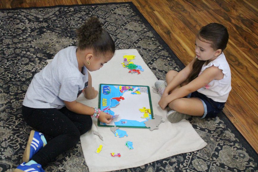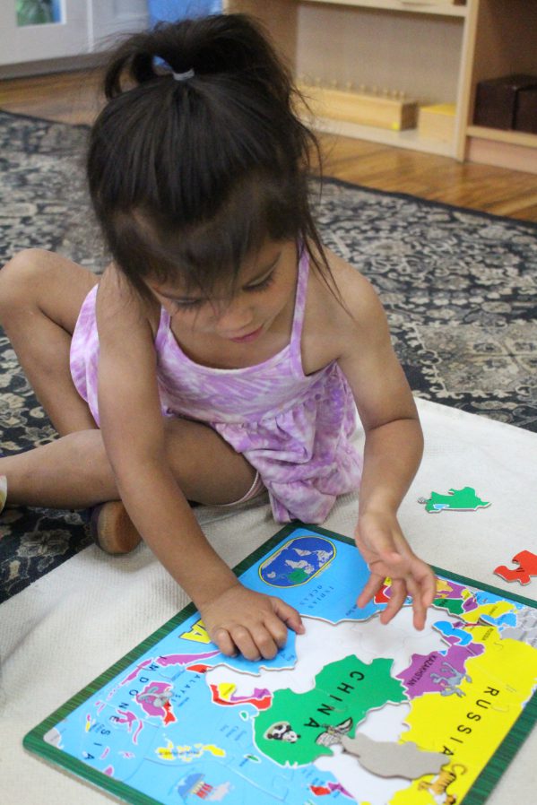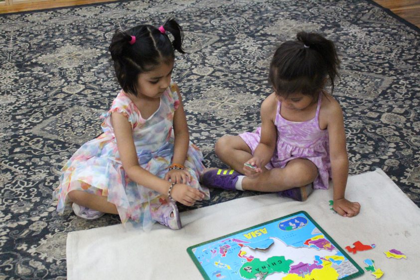 Children aged 3 to 4 often find magic in everyday activities that adults might over look. Simple tasks like sorting, transferring objects with a spoon or tongs, pouring, or washing dishes completely captivate them. These practical life exercises are the early signs of developing coordination between the mind and body. That’s why our Montessori preschool curriculum is centered on real-world, hands-on experiences. Using concrete tools, children discover math concepts with the movable alphabet, they explore language and through working with cubes, cylinders, and other materials, they learn categorization, spatial awareness, and much more. Our carefully prepared environment encourages independence, creativity, and confidence. Each child is nurtured at their own pace by experienced Montessori-trained educators who understand that every child’s path to learning is unique. At FLMA Preschool, we offer a warm, inclusive community where children feel safe, valued, and excited to learn every day. To keep parents closely connected to their child’s growth and daily experiences, we use Brightwheel, a secure communication platform that allows teachers to share real-time updates, photos, learning milestones, and messages. This open line of communication ensures families stay informed, involved, and reassured—strengthening the bond between home and school. Our broad-based primary preschool program includes.