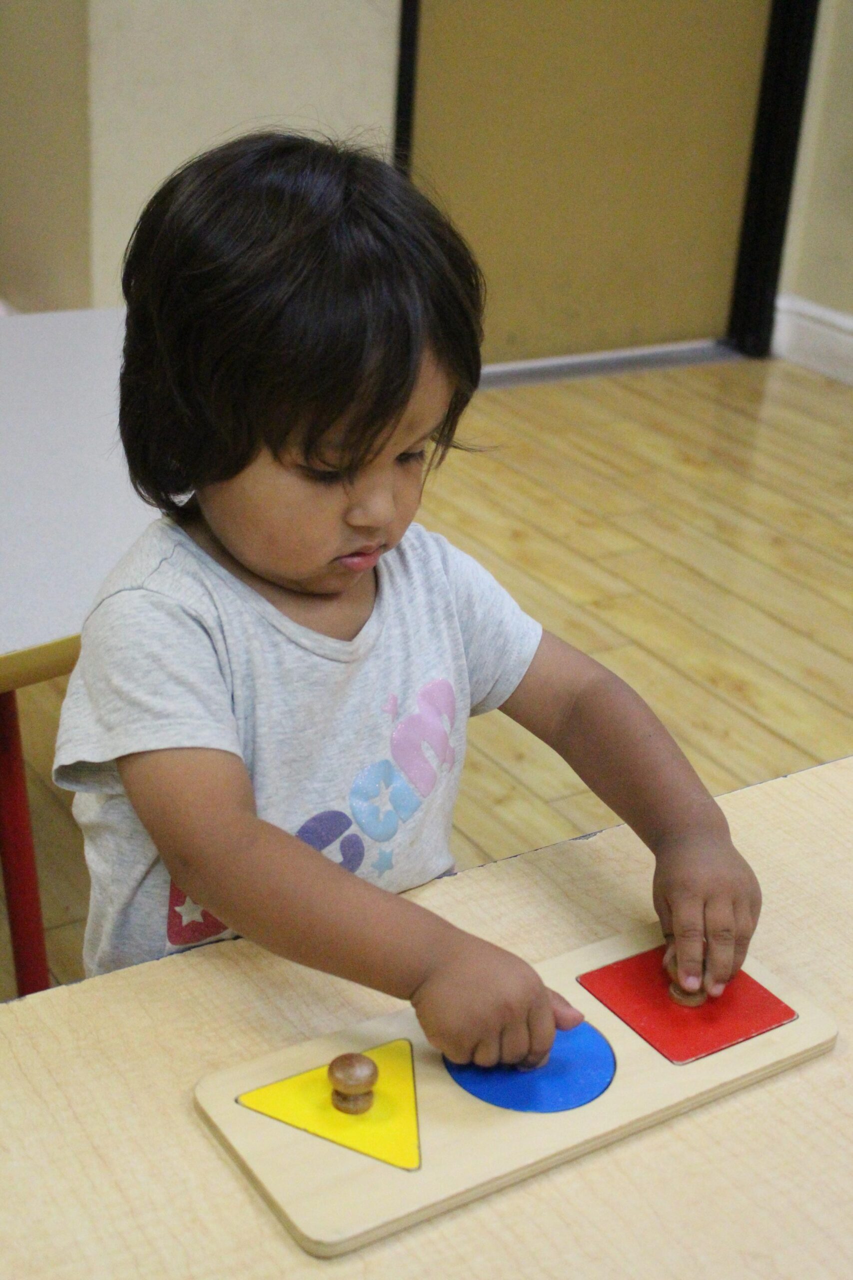 Teachers will set up the environment with hands on activities creating learning opportunities and act as guides, observers and nurture each child’s development needs rather than directing their activities. Toddlers have a dedicated daily schedule to focus on activities that interest them, fostering concentration and a sense of accomplishment. Which will focus on sensorial, practical life, social-emotional and language development.